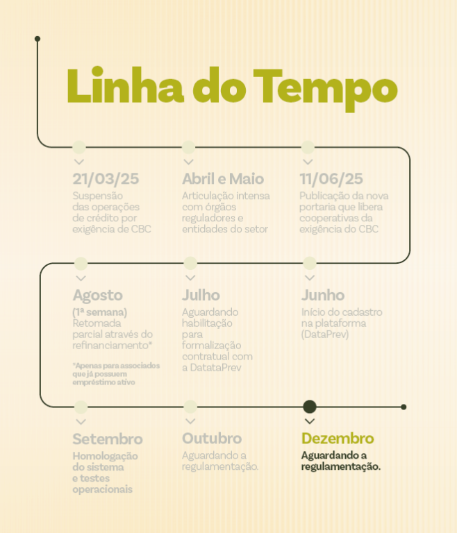 Desde o início do ano, vivemos um período de mudanças importantes na forma como as cooperativas de crédito realizam operações consignadas. Por isso, a seguir, compartilhamos a trajetória que estamos percorrendo desde março de 2025 até o momento, explicando o que motivou cada etapa, o que avançou e o que ainda depende de regulamentação externa. Veja a nossa trajetória: